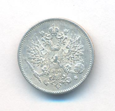 Лицевая сторона — российский двуглавый орел с гербом Великого княжества Финляндского на груди, оборотная — номинал и дата в венке из дубовых листьев. Проба — 750, нормативный вес — 1,27 грамма, гурт рубчатый.