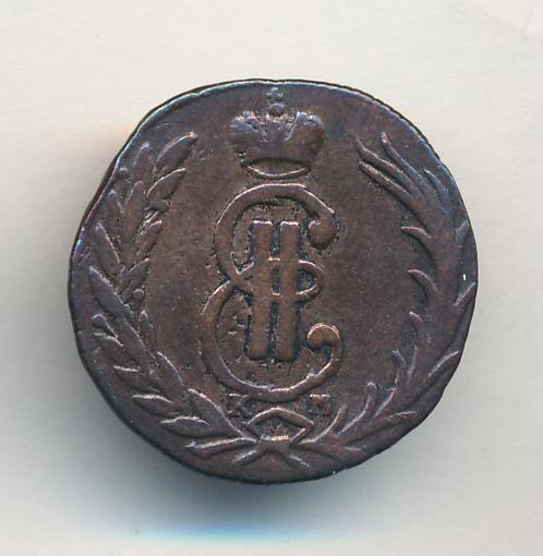 Лицевая сторона - два соболя поддерживают щит с обозначением номинала (копейка) под короной, надпись «СИБИРСКАЯ МОНЕТА». Оборотная — вензель Екатерины II в венке из пальмовой и лавровой ветвей. Гурт — шнур, вес — 6,55 грамма.