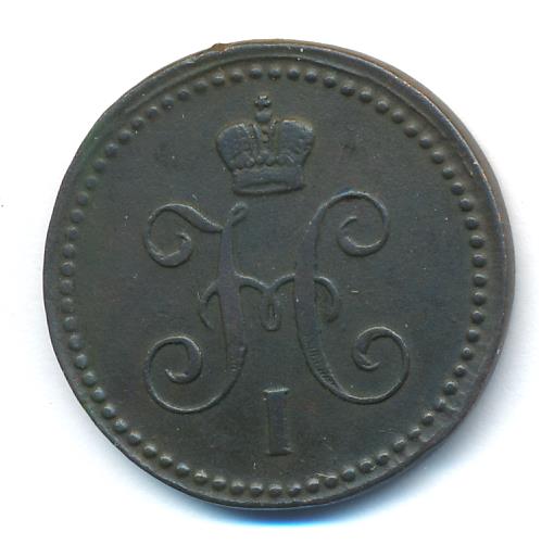 Лицевая сторона — вензель Николая I в бусовом ободке, оборотная — надпись «1 КОПЕЙКА СЕРЕБРОМ» и дата. Нормативный вес — 10,24 грамма, гурт гладкий.