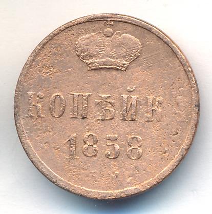 Лицевая сторона — вензель Николая I, оборотная — обозначение номинала (копейка) и дата. Нормативный вес — 5,12 грамма, гурт гладкий.