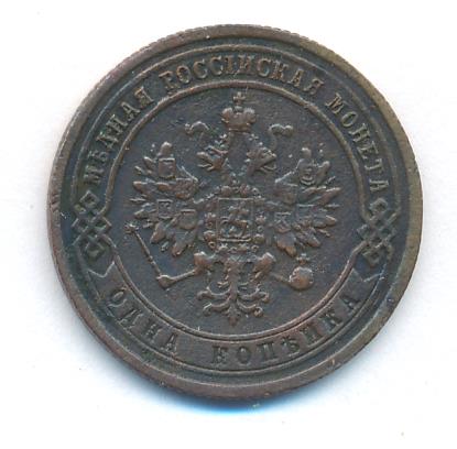 Лицевая сторона — двуглавый орел, надпись МЕДНАЯ РОССIЙСКАЯ МОНЕТА и обозначение номинала (одна копейка); оборотная — обозначение номинала (1 копейка) в бусовом ободке и дата. Нормативный вес — 3,28 грамма, гурт рубчатый.