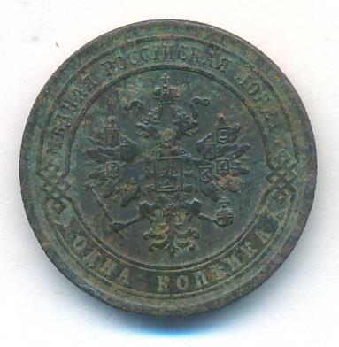 Лицевая сторона — двуглавый орел, надпись МЕДНАЯ РОССIЙСКАЯ МОНЕТА и обозначение номинала (одна копейка); оборотная — обозначение номинала (1 копейка) в бусовом ободке и дата. Нормативный вес — 3,28 грамма, гурт рубчатый.