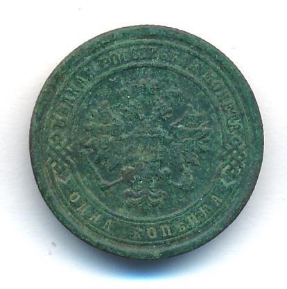 Лицевая сторона — двуглавый орел, надпись МЕДНАЯ РОССIЙСКАЯ МОНЕТА и обозначение номинала (одна копейка); оборотная — обозначение номинала (1 копейка) в бусовом ободке и дата. Нормативный вес — 3,28 грамма, гурт рубчатый.