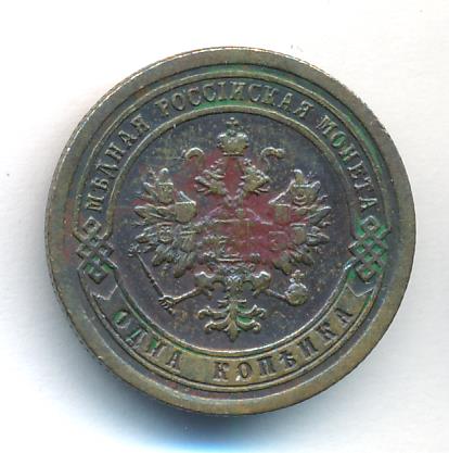 Лицевая сторона — двуглавый орел, надпись МЕДНАЯ РОССIЙСКАЯ МОНЕТА и обозначение номинала (одна копейка); оборотная — обозначение номинала (1 копейка) в бусовом ободке и дата. Нормативный вес — 3,28 грамма, гурт рубчатый.