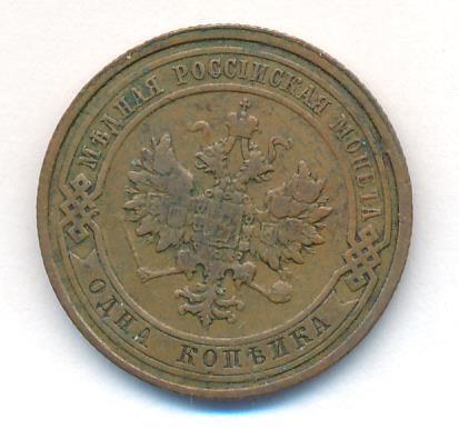 Лицевая сторона — двуглавый орел, надпись МЕДНАЯ РОССIЙСКАЯ МОНЕТА и обозначение номинала (одна копейка); оборотная — обозначение номинала (1 копейка) в бусовом ободке и дата. Нормативный вес — 3,28 грамма, гурт рубчатый.