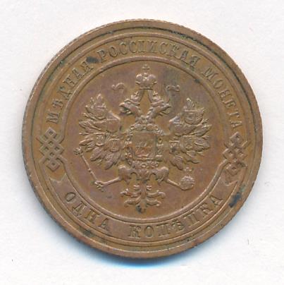 Лицевая сторона — двуглавый орел, надпись МЕДНАЯ РОССIЙСКАЯ МОНЕТА и обозначение номинала (одна копейка); оборотная — обозначение номинала (1 копейка) в бусовом ободке и дата. Нормативный вес — 3,28 грамма, гурт рубчатый.
