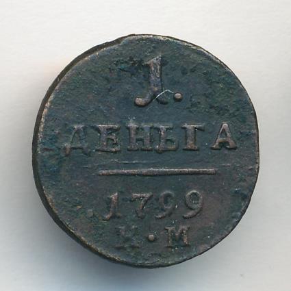 Лицевая сторона — вензель Павла I под короной, оборотная — номинал (1 деньга) и дата. Нормативный вес — 5,12 грамма, гурт — шнур.