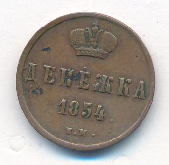 Лицевая сторона — вензель Николая I, оборотная — обозначение номинала (денежка) и дата. Нормативный вес — 2,56 грамма, гурт гладкий.