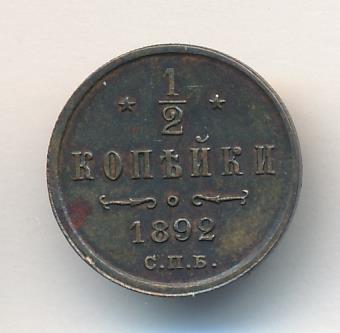 Лицевая сторона — вензель Александра II в венке из лавровой и дубовой ветвей; оборотная — обозначение номинала (1/2 копейки) и дата. Нормативный вес — 1,64 грамма, гурт рубчатый.