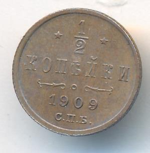 Лицевая сторона — вензель Александра II в венке из лавровой и дубовой ветвей; оборотная — обозначение номинала (1/2 копейки) и дата. Нормативный вес — 1,64 грамма, гурт рубчатый.