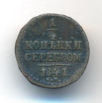 Лицевая сторона — вензель Николая I в бусовом ободке, оборотная — надпись «1/4 КОПЕЙКИ СЕРЕБРОМ» и дата. Нормативный вес — 2,56 грамма, гурт гладкий.
