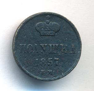 Лицевая сторона — вензель Николая I, оборотная — обозначение номинала (полушка) и дата. Нормативный вес — 1,28 грамма, гурт гладкий.