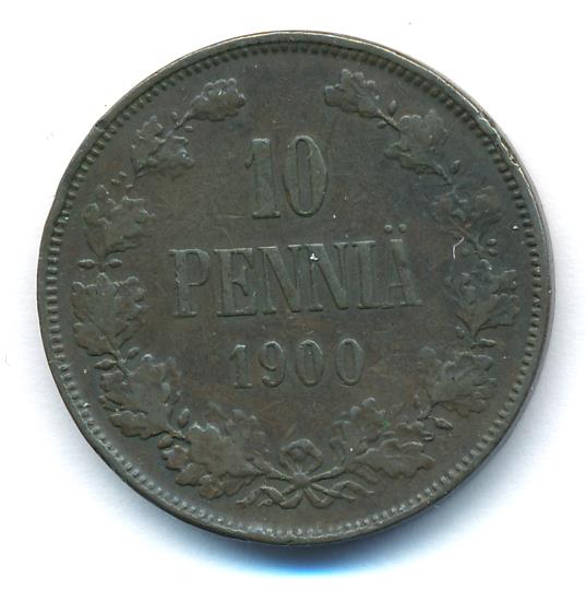 Лицевая сторона — вензель Александра II, оборотная — номинал (10 PENNIA) в венке из дубовых ветвей и дата. Нормативный вес — 12,80 грамма, гурт гладкий.