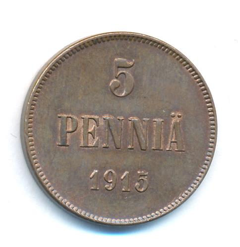 Лицевая сторона — вензель Александра II, оборотная — номинал (5 PENNIA) и дата. Нормативный вес — 6,40 грамма, гурт гладкий.