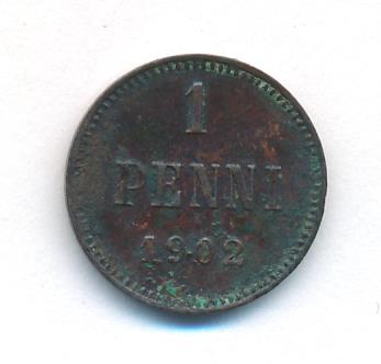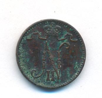 Лицевая сторона — вензель Александра II, оборотная — номинал (1 PENNIA) и дата. Нормативный вес — 1,28 грамма, гурт гладкий.