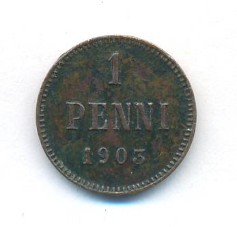 Лицевая сторона — вензель Александра II, оборотная — номинал (1 PENNIA) и дата. Нормативный вес — 1,28 грамма, гурт гладкий.