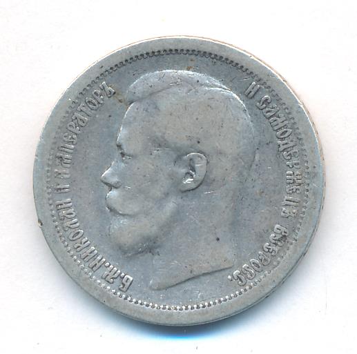 Лицевая сторона — портрет Николая II в круговой надписи «Б.М. НИКОЛАЙ II ИМПЕРАТОРЪ И САМОДЕРЖЕЦЪ ВСЕРОСС», оборотная — двуглавый орел, обозначение номинала (50 копеекъ) и дата.