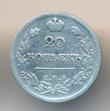 Лицевая сторона - двуглавый орел и дата, оборотная — обозначение номинала (20 копеекъ) в венке из лавровой и дубовой ветвей. Проба до 1813 года — 750, нормативный вес — 4,80 грамма; после 1813 года — проба 868, нормативный вес — 4,15 грамма.