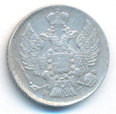 В январе 1830 года Николай I дает министру финансов Е. Ф. Канкрину устное указание «о сделании на золотых и серебряных монетах орла как на платиновых». На новом гербе крылья орла подняты, на них размещены шесть местных гербов — казанский, астраханский, сибирский, польский, херсонесский и финляндский. На груди орла — московский герб, на головах — короны. Выделяют шесть типов орла.