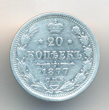 Лицевая сторона — гербовый орел, оборотная —обозначение номинала (20 копеекъ), окруженное венком из лавровой и дубовой ветвей и дата.