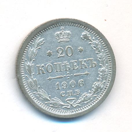 Лицевая сторона — гербовый орел, оборотная —обозначение номинала (20 копеекъ), окруженное венком из лавровой и дубовой ветвей и дата.