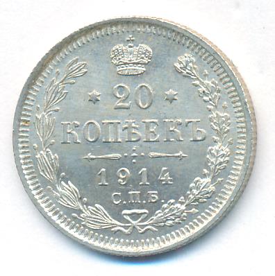 Лицевая сторона — гербовый орел, оборотная —обозначение номинала (20 копеекъ), окруженное венком из лавровой и дубовой ветвей и дата.