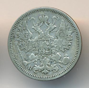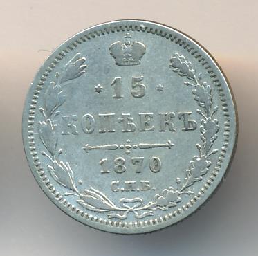 Лицевая сторона — гербовый орел, оборотная —обозначение номинала (15 копеекъ), окруженное венком из лавровой и дубовой ветвей и дата.