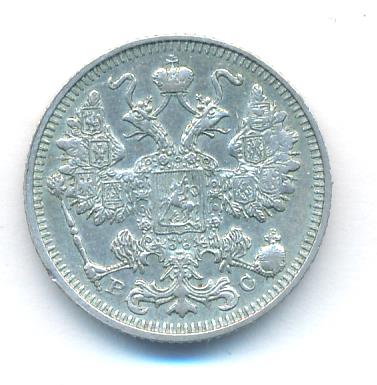 Лицевая сторона — гербовый орел, оборотная —обозначение номинала (15 копеекъ), окруженное венком из лавровой и дубовой ветвей и дата.