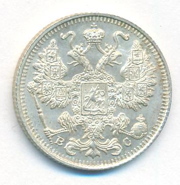 Лицевая сторона — гербовый орел, оборотная —обозначение номинала (15 копеекъ), окруженное венком из лавровой и дубовой ветвей и дата.