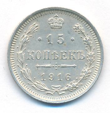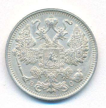 Лицевая сторона — гербовый орел, оборотная —обозначение номинала (15 копеекъ), окруженное венком из лавровой и дубовой ветвей и дата.