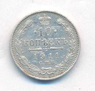 Лицевая сторона — гербовый орел, оборотная —обозначение номинала (10 копеекъ), окруженное венком из лавровой и дубовой ветвей и дата.
