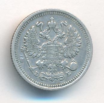 Лицевая сторона — гербовый орел, оборотная —обозначение номинала (10 копеекъ), окруженное венком из лавровой и дубовой ветвей и дата.