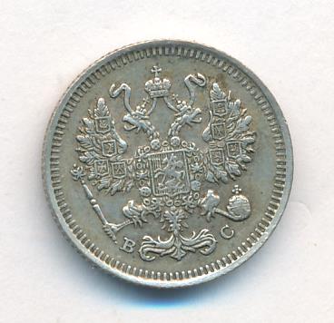 Лицевая сторона — гербовый орел, оборотная —обозначение номинала (10 копеекъ), окруженное венком из лавровой и дубовой ветвей и дата.
