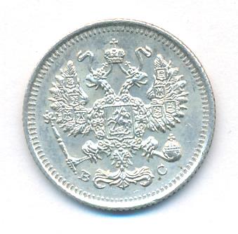 Лицевая сторона — гербовый орел, оборотная —обозначение номинала (10 копеекъ), окруженное венком из лавровой и дубовой ветвей и дата.