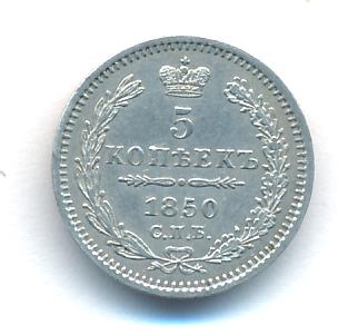 Лицевая сторона — новый гербовый орел с поднятыми крыльями, оборотная —обозначение номинала (5 копеекъ), окруженное венком из лавровой и дубовой ветвей и дата. Проба — 868, нормативный вес — 1,04 грамма.