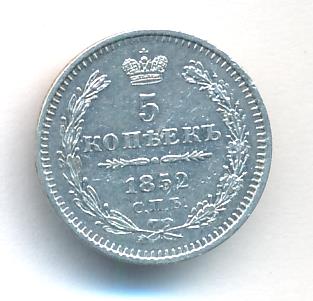 Лицевая сторона — новый гербовый орел с поднятыми крыльями, оборотная —обозначение номинала (5 копеекъ), окруженное венком из лавровой и дубовой ветвей и дата. Проба — 868, нормативный вес — 1,04 грамма.