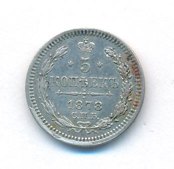 Лицевая сторона — гербовый орел, оборотная —обозначение номинала (5 копеекъ), окруженное венком из лавровой и дубовой ветвей и дата.
