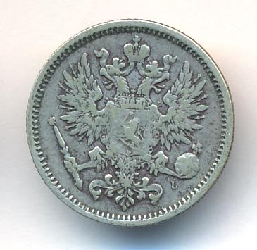 Лицевая сторона — российский двуглавый орел с гербом Великого княжества Финляндского на груди, оборотная — номинал и дата в венке из дубовых листьев. Проба — 750, нормативный вес — 2,55 грамма, гурт рубчатый.