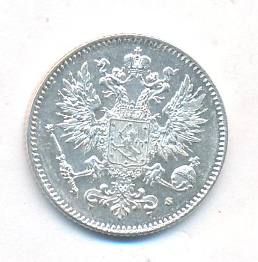 Лицевая сторона — российский двуглавый орел с гербом Великого княжества Финляндского на груди, оборотная — номинал и дата в венке из дубовых листьев. Проба — 750, нормативный вес — 2,55 грамма, гурт рубчатый.