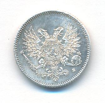 Лицевая сторона — российский двуглавый орел с гербом Великого княжества Финляндского на груди, оборотная — номинал и дата в венке из дубовых листьев. Проба — 750, нормативный вес — 1,27 грамма, гурт рубчатый.