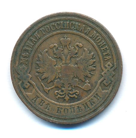 Лицевая сторона — двуглавый орел, надпись МЕДНАЯ РОССIЙСКАЯ МОНЕТА и обозначение номинала (две копейки); оборотная — обозначение номинала (2 копейки) в бусовом ободке и дата. Нормативный вес — 6,55 грамма, гурт рубчатый.