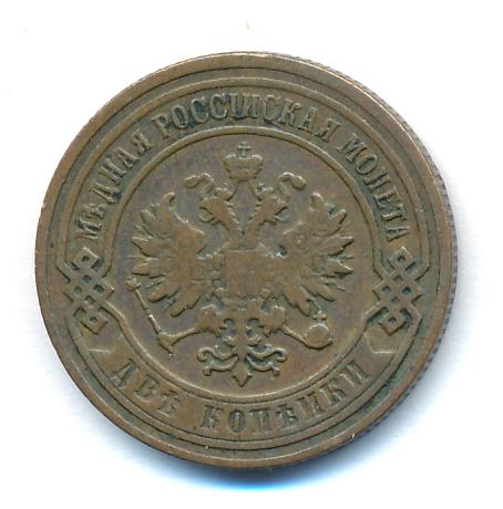 Лицевая сторона — двуглавый орел, надпись МЕДНАЯ РОССIЙСКАЯ МОНЕТА и обозначение номинала (две копейки); оборотная — обозначение номинала (2 копейки) в бусовом ободке и дата. Нормативный вес — 6,55 грамма, гурт рубчатый.