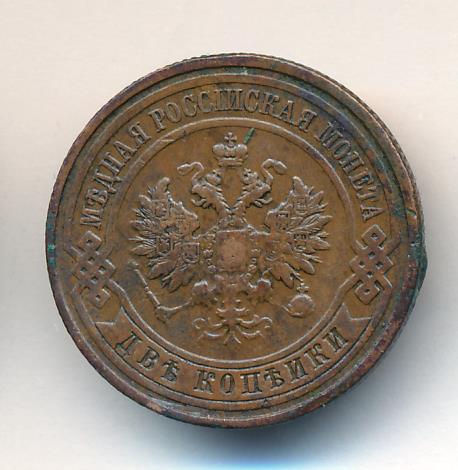 Лицевая сторона — двуглавый орел, надпись МЕДНАЯ РОССIЙСКАЯ МОНЕТА и обозначение номинала (две копейки); оборотная — обозначение номинала (2 копейки) в бусовом ободке и дата. Нормативный вес — 6,55 грамма, гурт рубчатый.