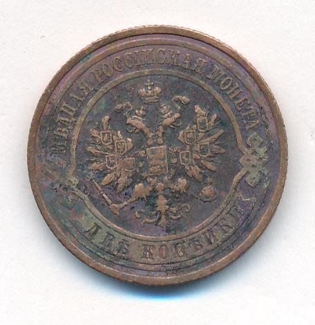 Лицевая сторона — двуглавый орел, надпись МЕДНАЯ РОССIЙСКАЯ МОНЕТА и обозначение номинала (две копейки); оборотная — обозначение номинала (2 копейки) в бусовом ободке и дата. Нормативный вес — 6,55 грамма, гурт рубчатый.