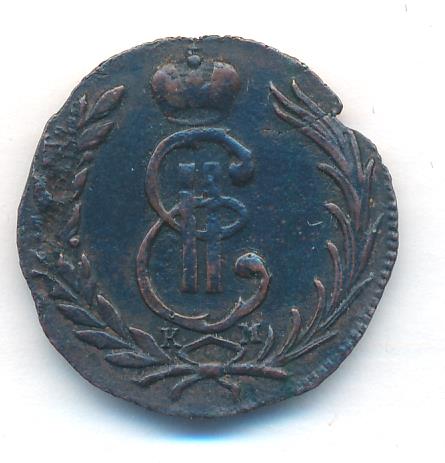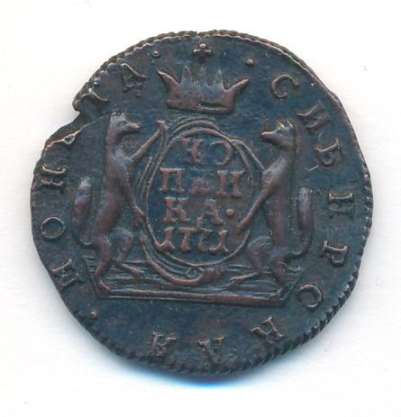 Лицевая сторона - два соболя поддерживают щит с обозначением номинала (копейка) под короной, надпись «СИБИРСКАЯ МОНЕТА». Оборотная — вензель Екатерины II в венке из пальмовой и лавровой ветвей. Гурт — шнур, вес — 6,55 грамма.