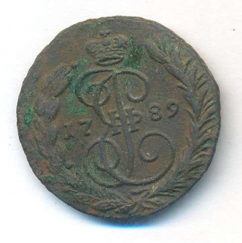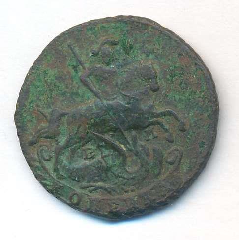 Лицевая сторона — Георгий Победоносец и обозначение номинала (копейка) в картуше, оборотная — вензель Екатерины II и дата. Нормативный вес — 10,24 грамма, гурт — сетка, или узор, или шнур.