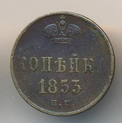 Лицевая сторона — вензель Николая I, оборотная — обозначение номинала (копейка) и дата. Нормативный вес — 5,12 грамма, гурт гладкий.