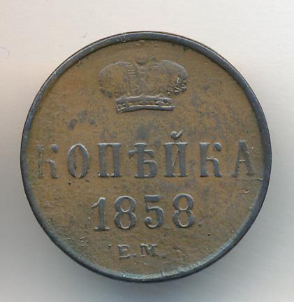 Лицевая сторона — вензель Николая I, оборотная — обозначение номинала (копейка) и дата. Нормативный вес — 5,12 грамма, гурт гладкий.