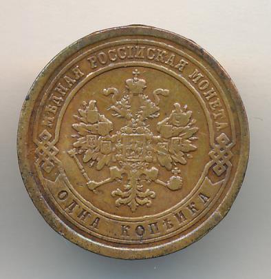 Лицевая сторона — двуглавый орел, надпись МЕДНАЯ РОССIЙСКАЯ МОНЕТА и обозначение номинала (одна копейка); оборотная — обозначение номинала (1 копейка) в бусовом ободке и дата. Нормативный вес — 3,28 грамма, гурт рубчатый.