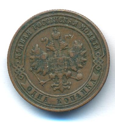 Лицевая сторона — двуглавый орел, надпись МЕДНАЯ РОССIЙСКАЯ МОНЕТА и обозначение номинала (одна копейка); оборотная — обозначение номинала (1 копейка) в бусовом ободке и дата. Нормативный вес — 3,28 грамма, гурт рубчатый.